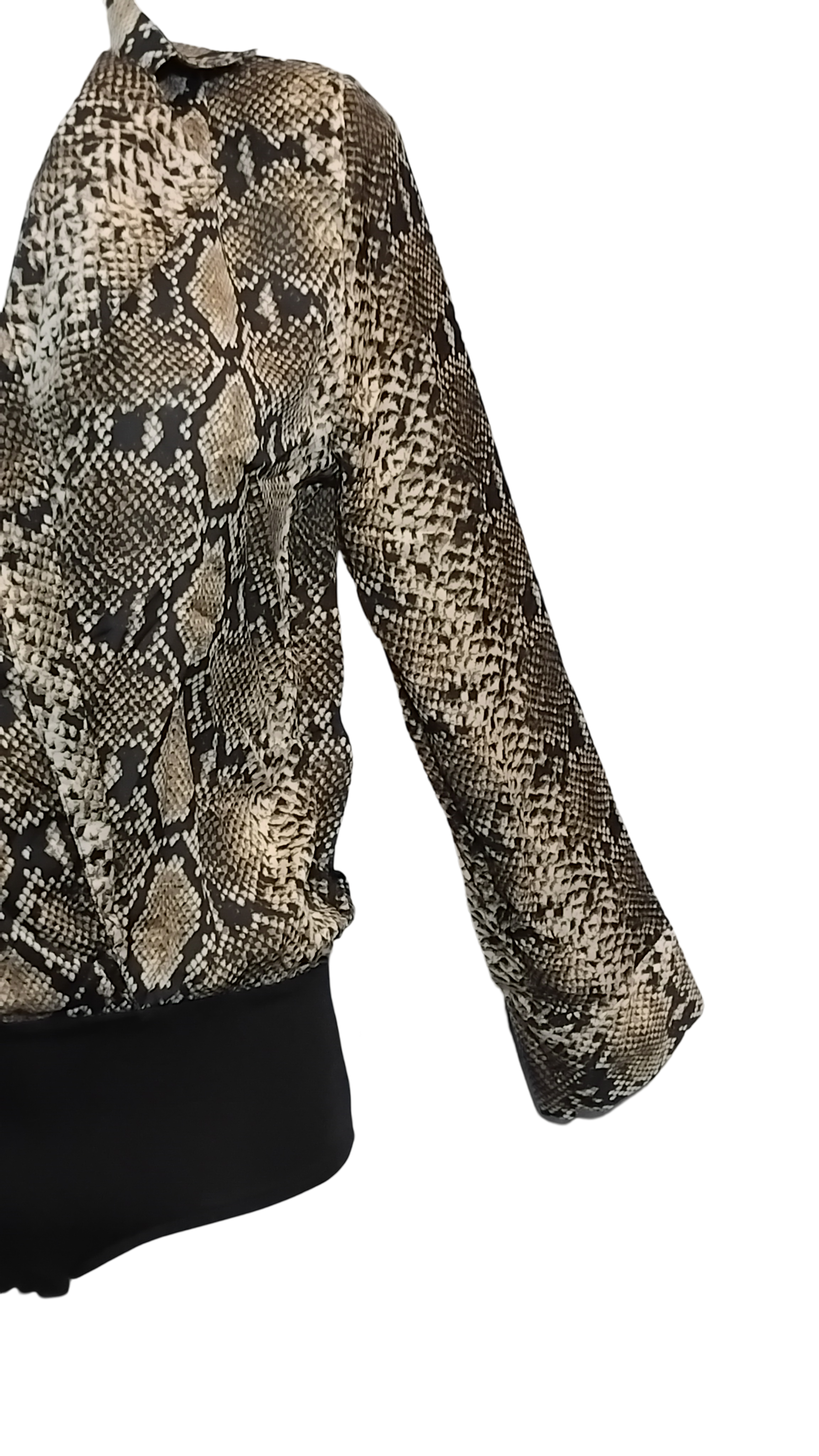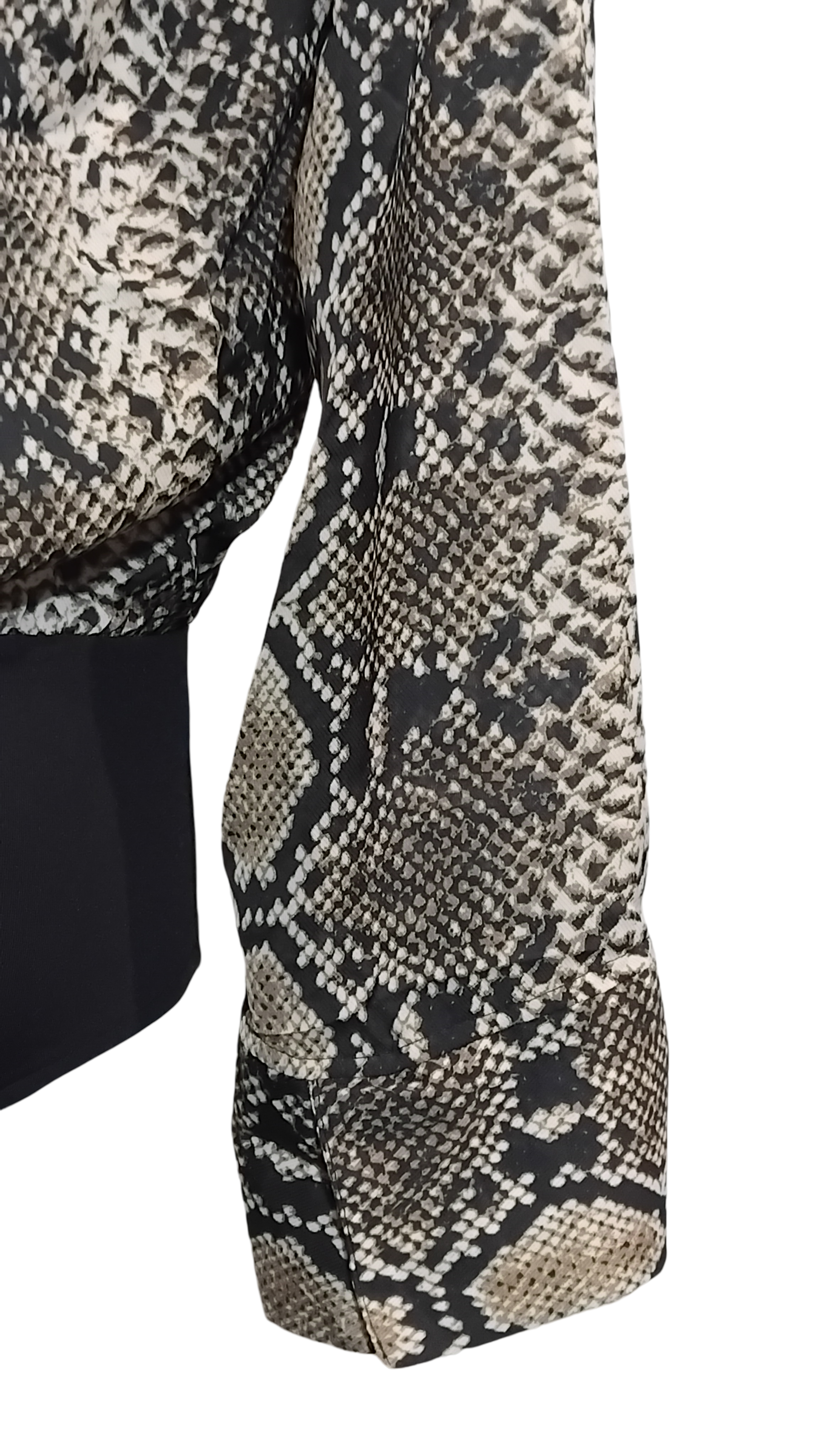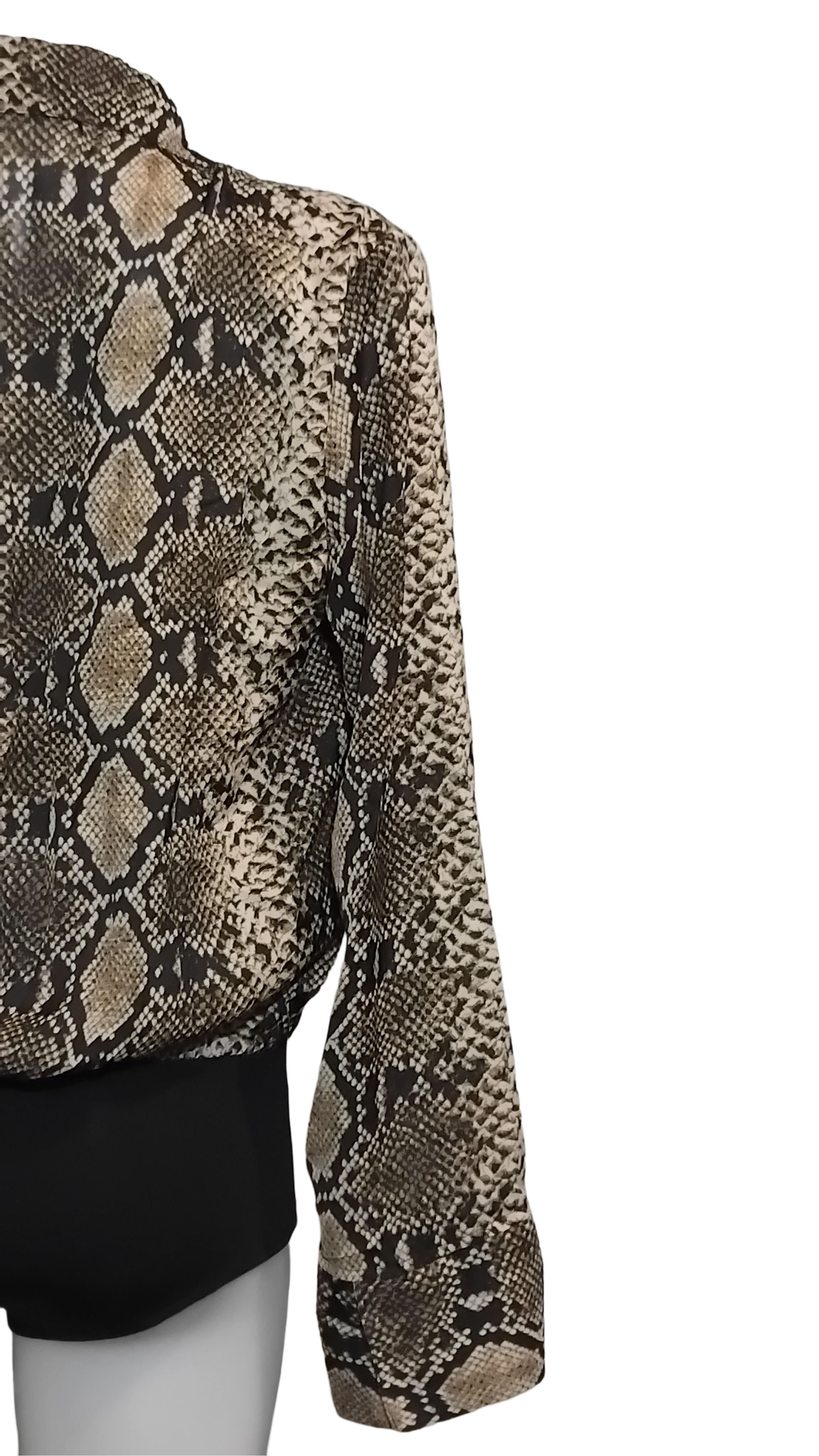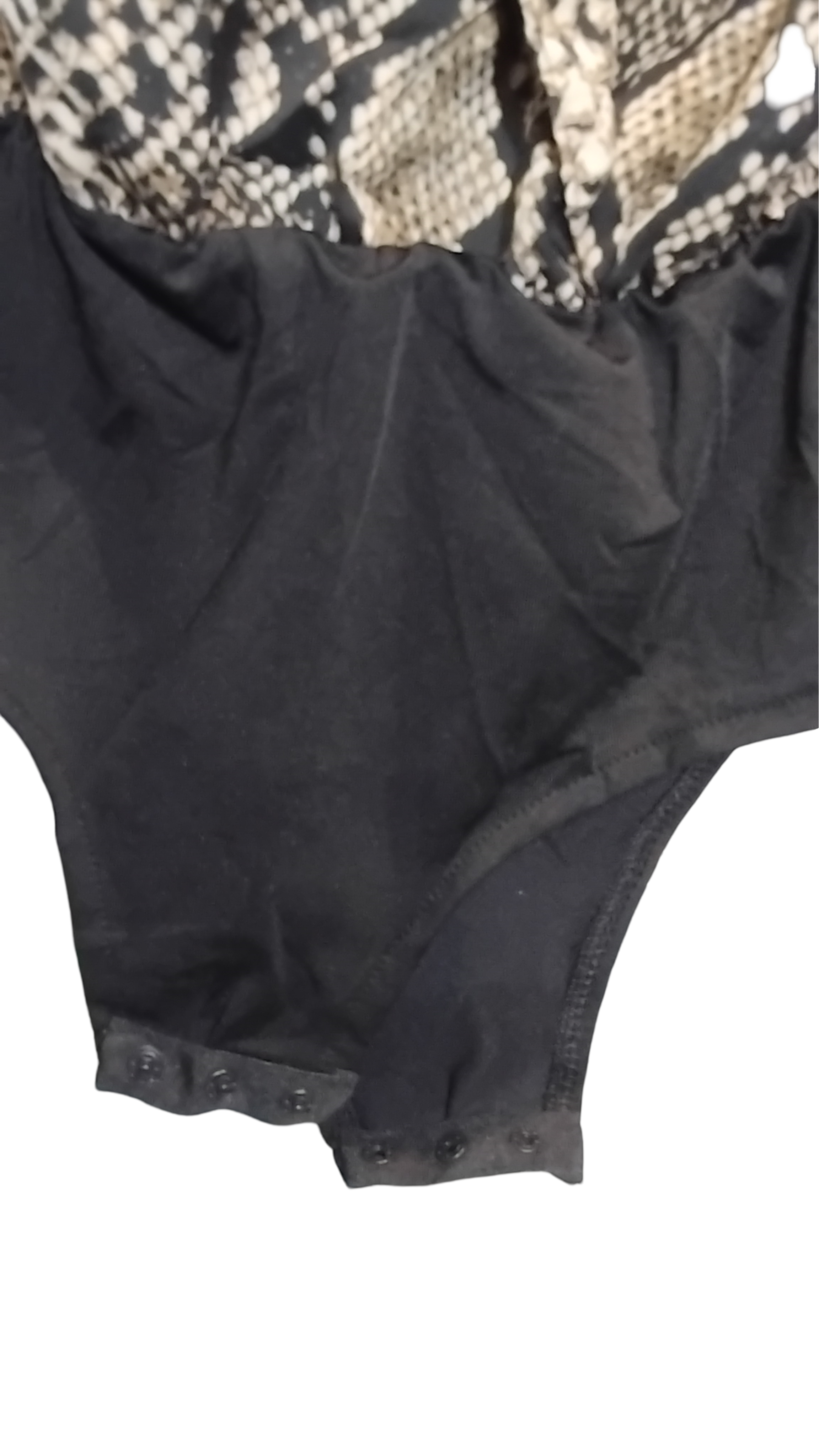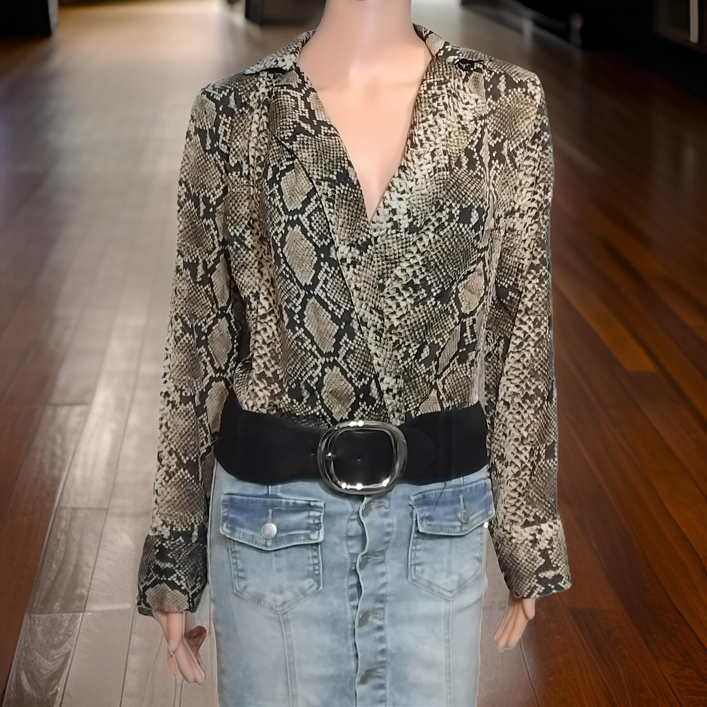 Body chemisier Femme, aspect peau de serpent “snake skin”, col blazer, bas noir