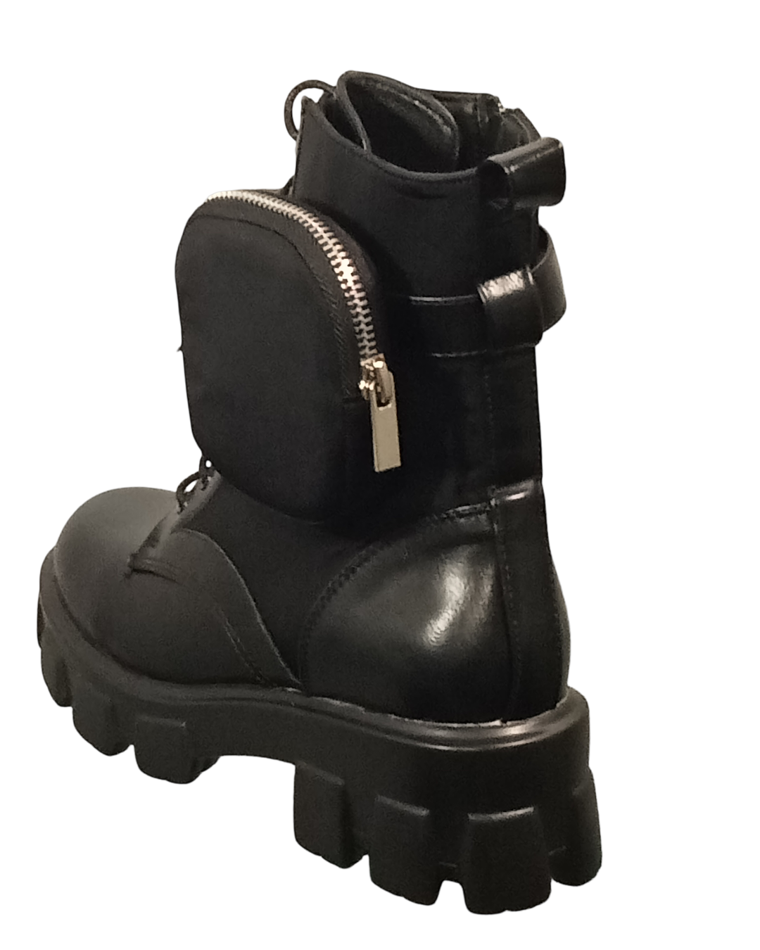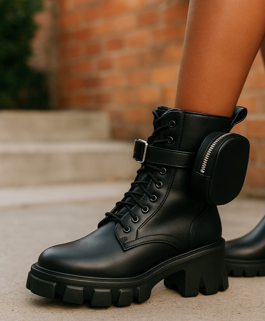Chaussures Femme, bottines militaires, boots avec porte-monnaie latéral