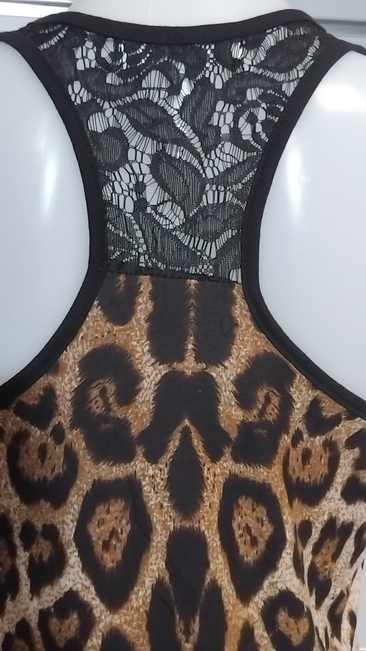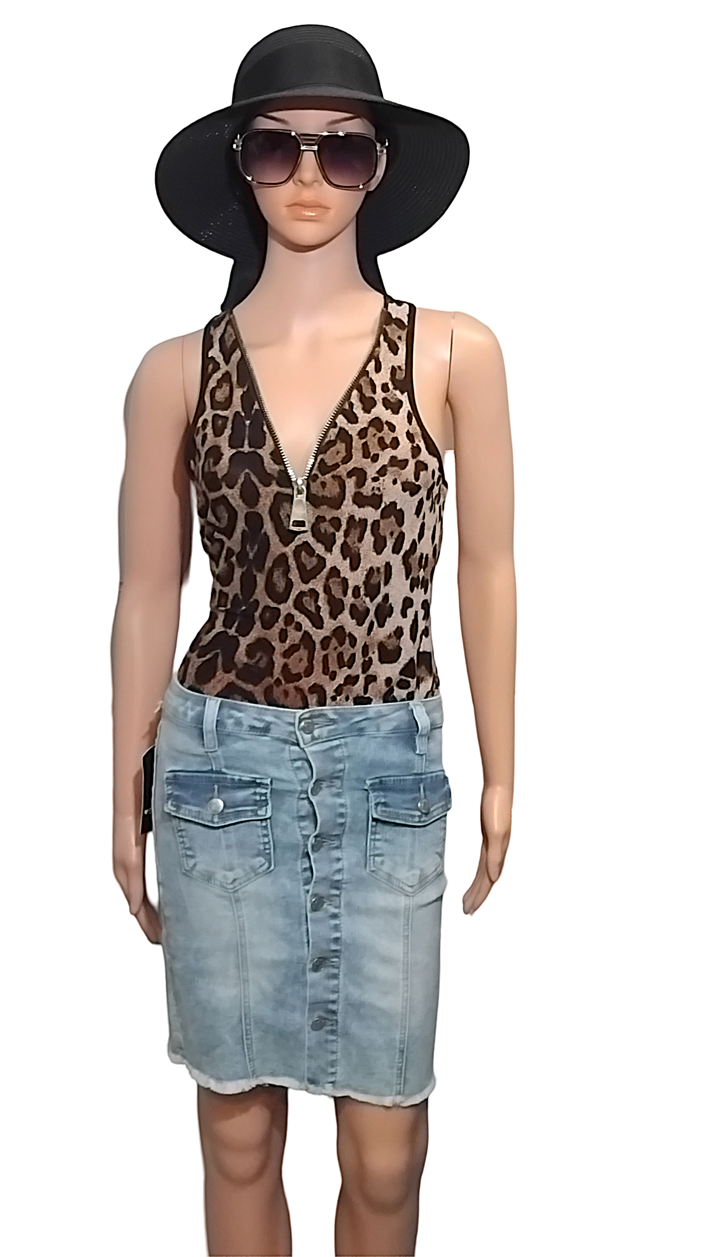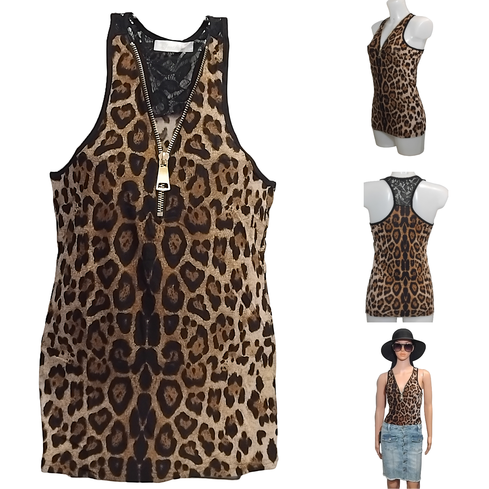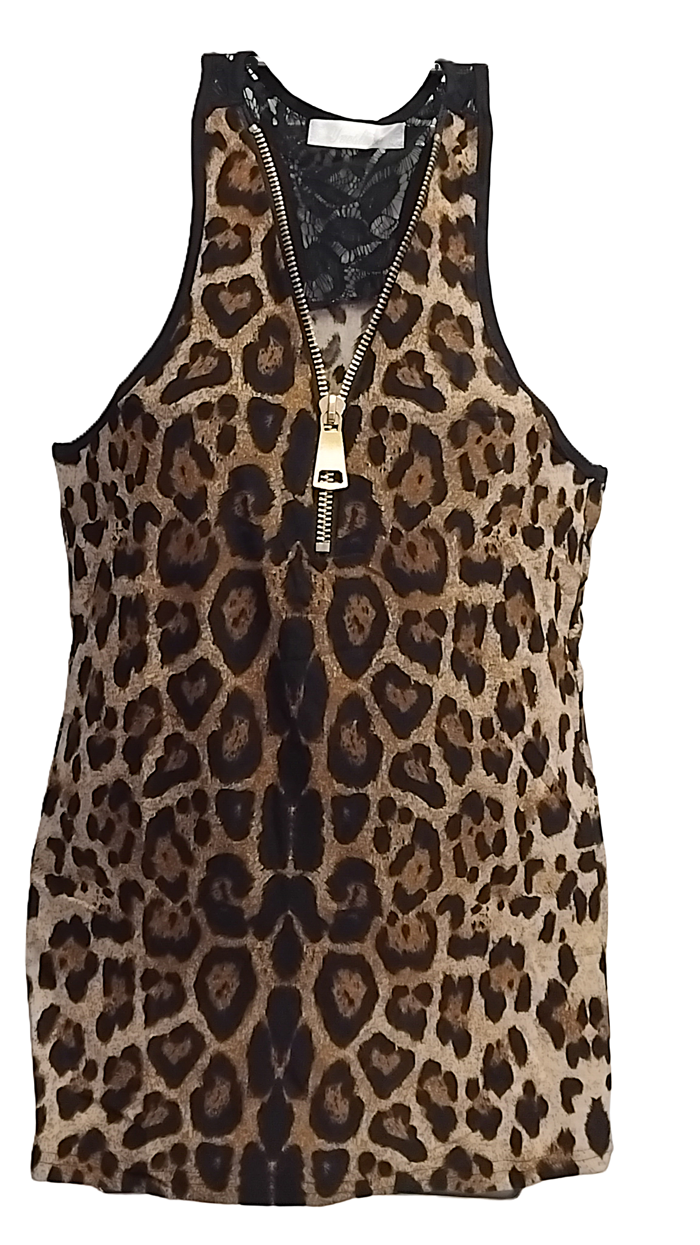 Dédardeur femme, top sans manches imprimé léopard, col zippé, marron et beige