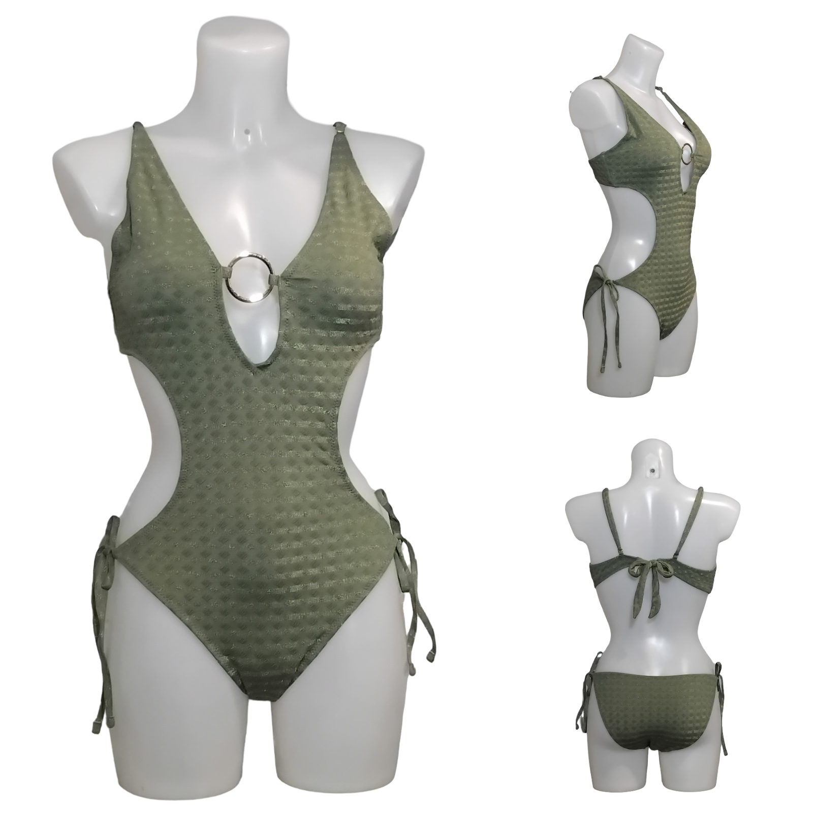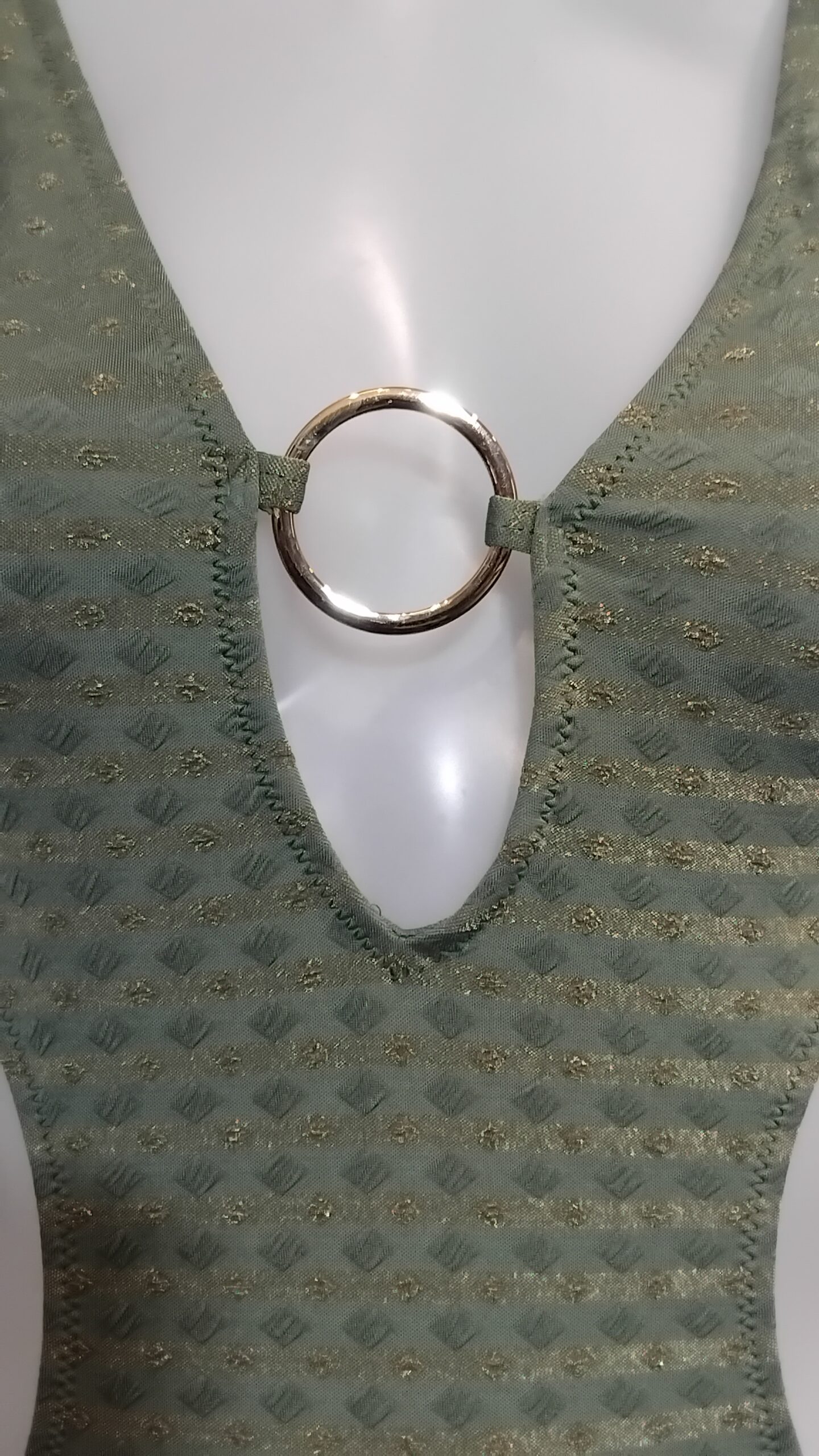 Bikini Maillot de bain Femme,1 pièce, dos nu, anneau doré , couleur kaki