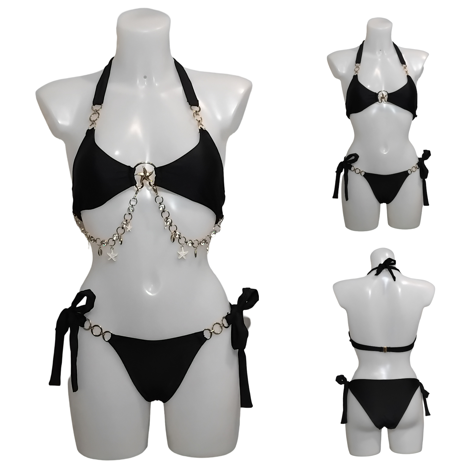 Maillot de bain Femme, bikini 2 pièces, bijou poitrine, logo étoile de mer, noir