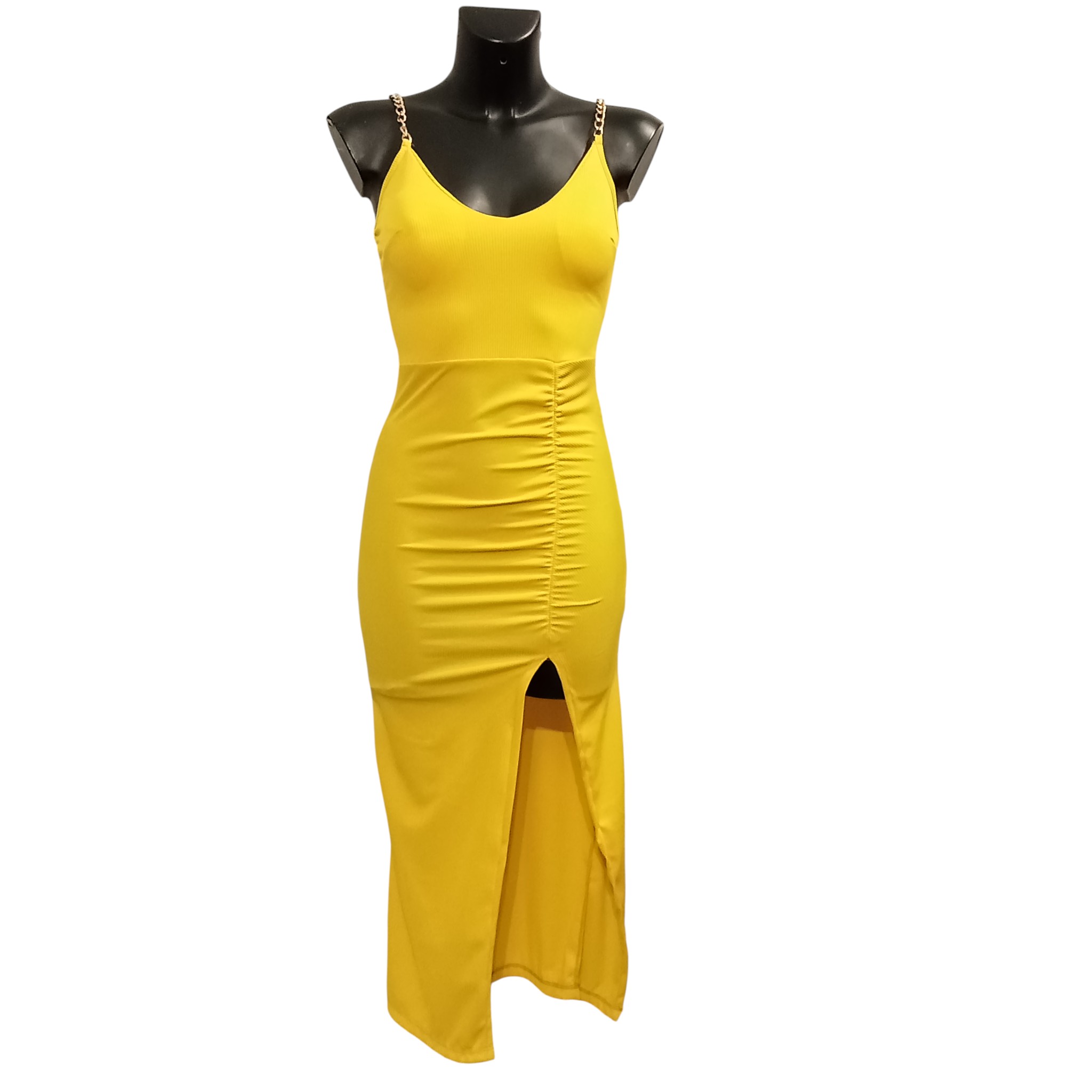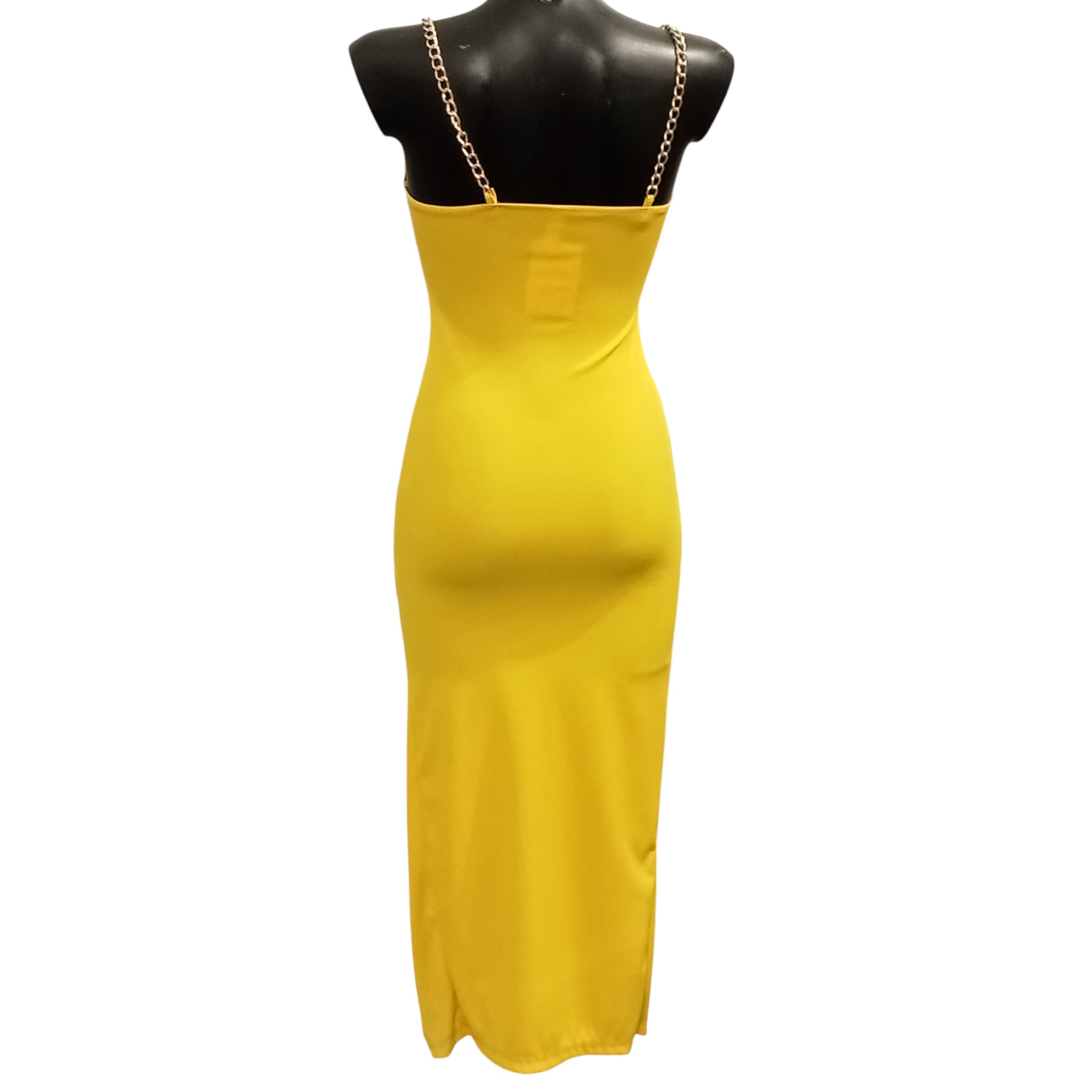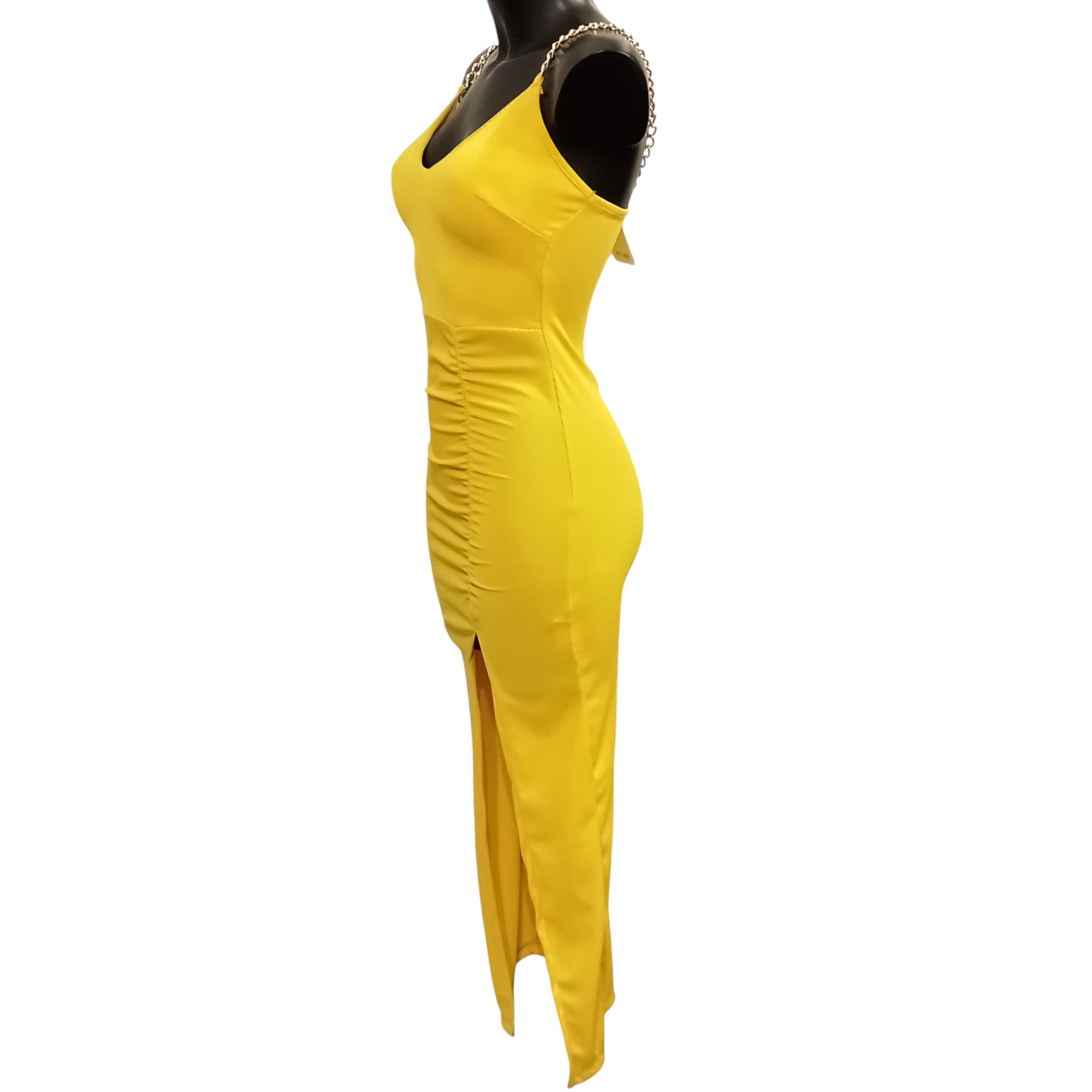 Robe de soirée, robe longue, plissée, bretelle en chaîne, poitrine rembourrée