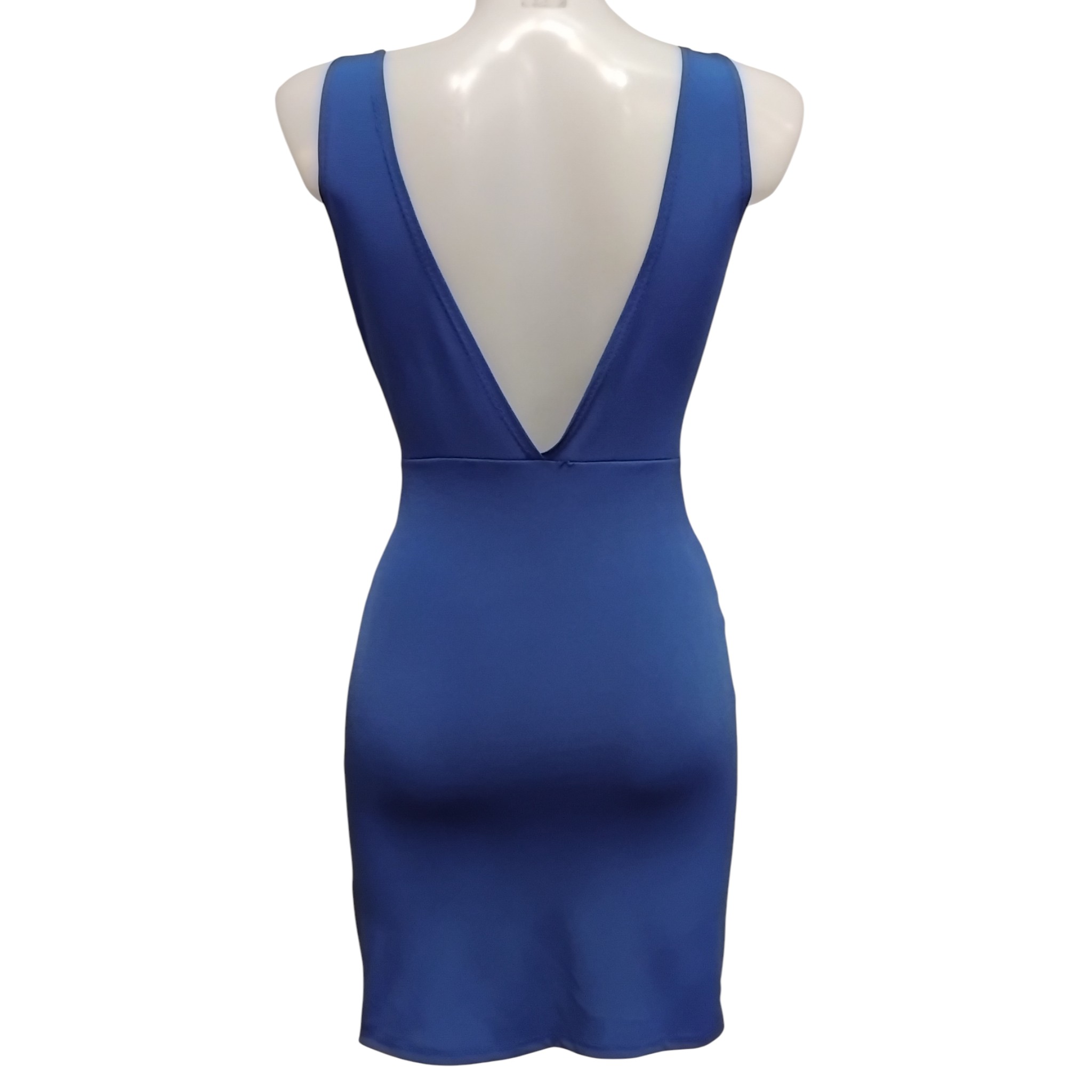 Robe de soirée, robe courte, sexy, décolleté plongeant, bijoux aux bretelles, bleu