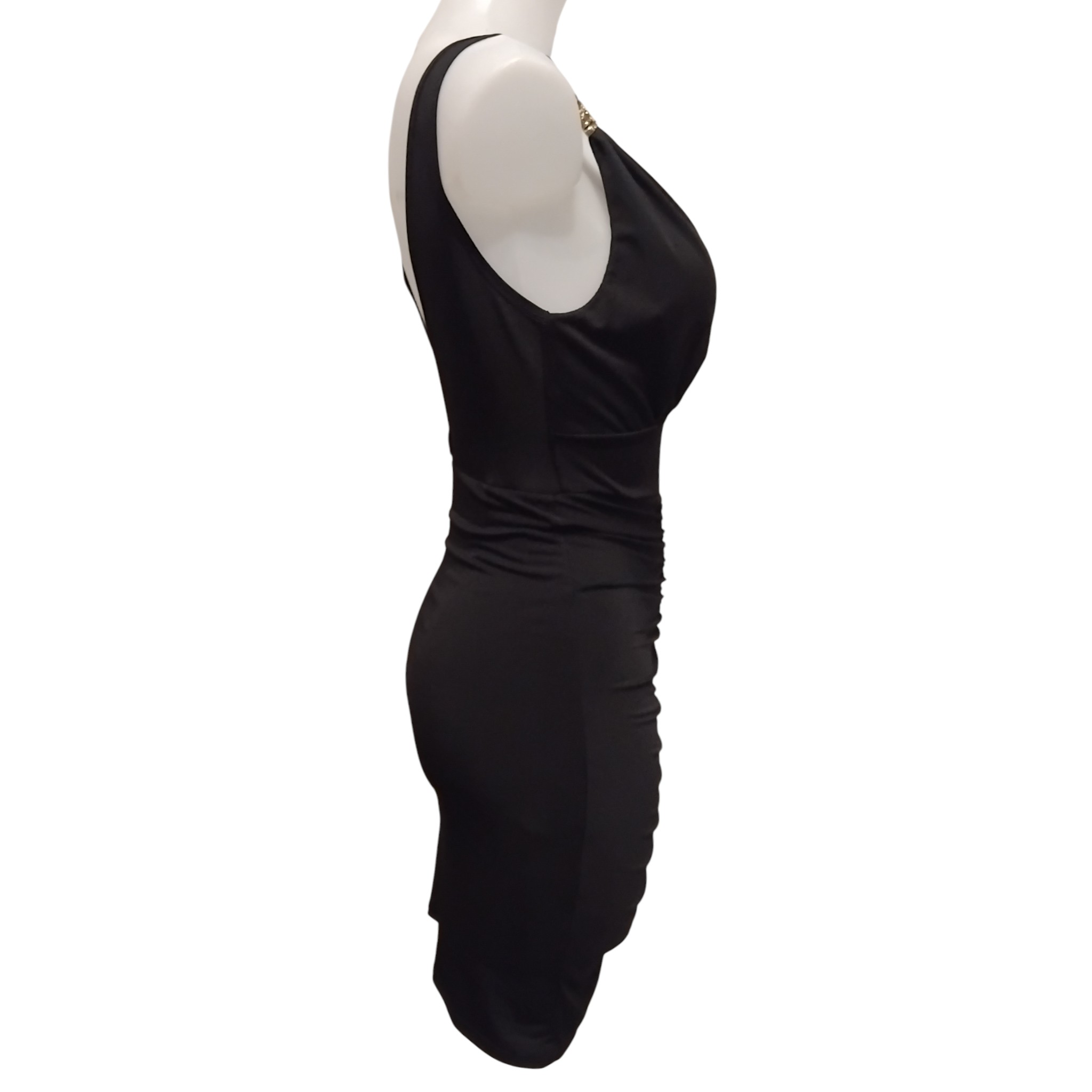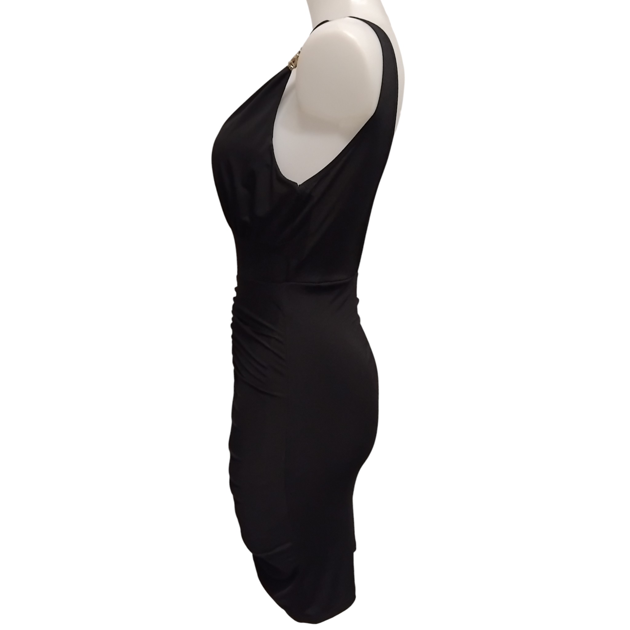 Robe de soirée, robe courte, sexy, décolleté plongeant, bijoux aux bretelles, noir