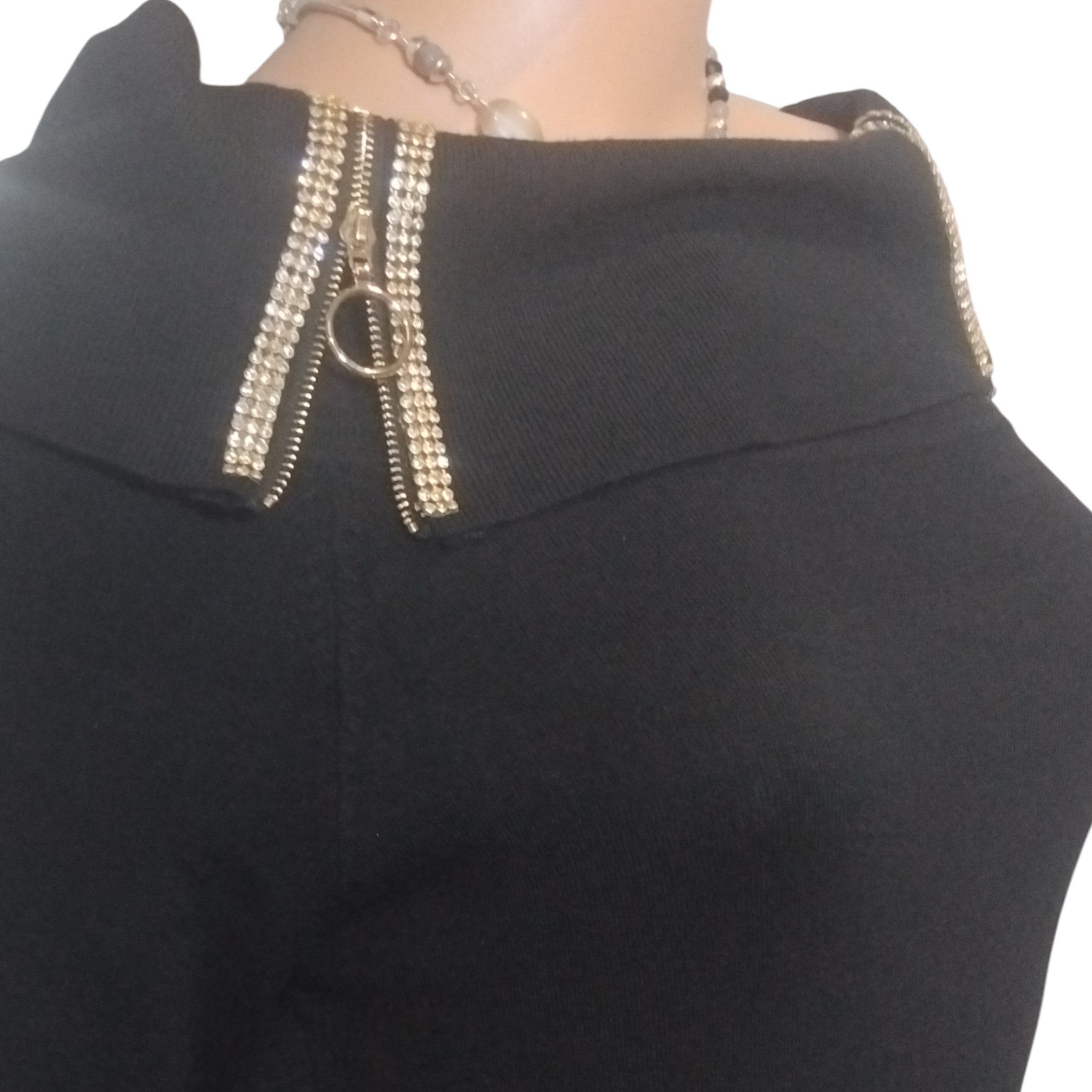 - Zip et strass au col et sur le bas-côté